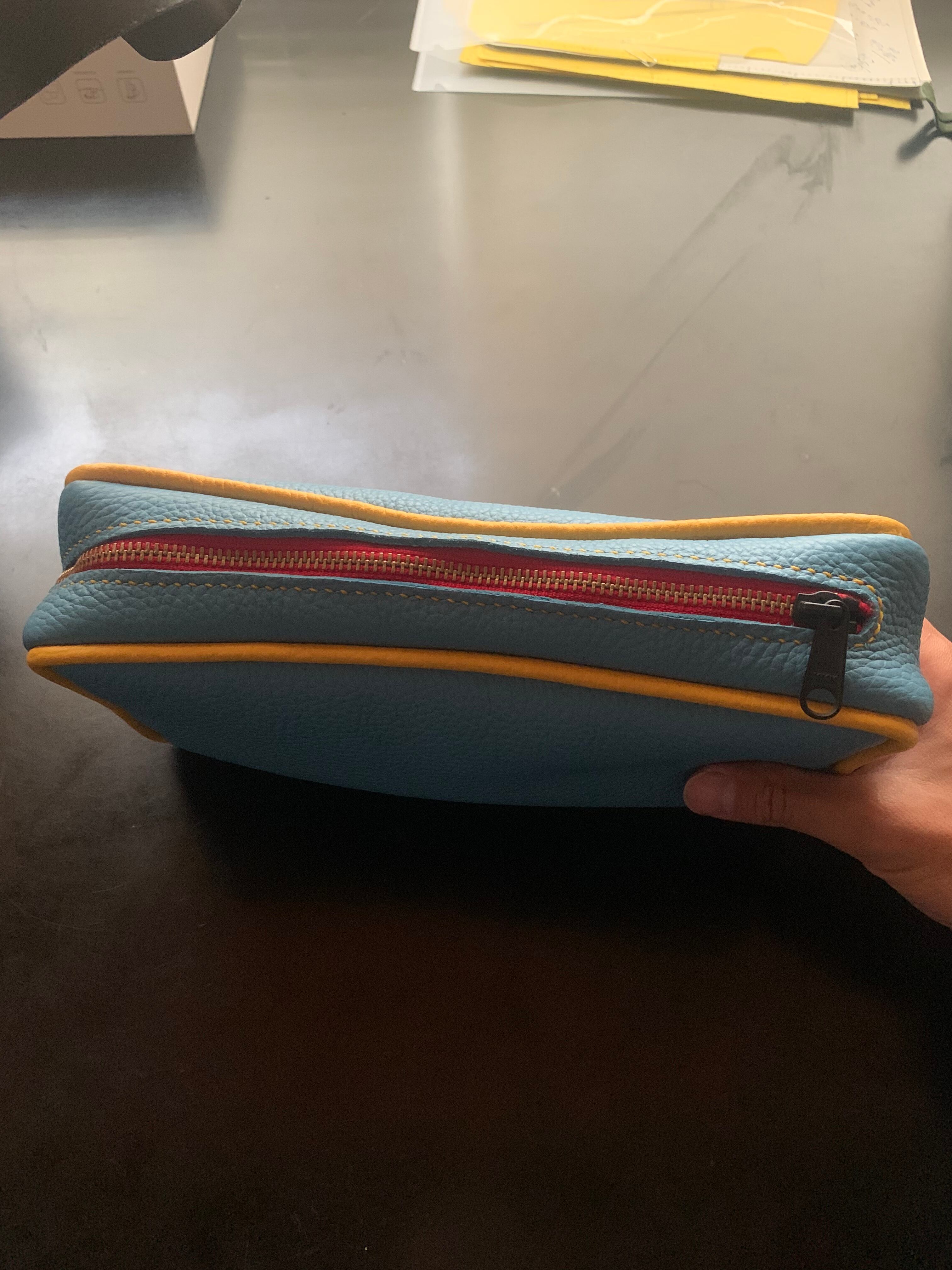柔らかい素材で大きめで財布携帯など余裕で入ります。
